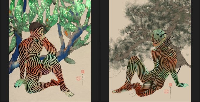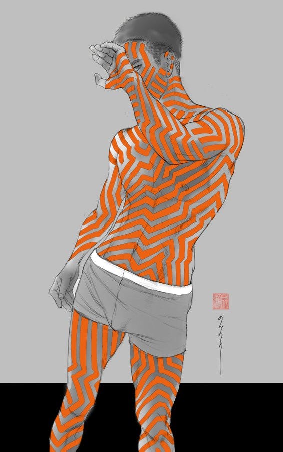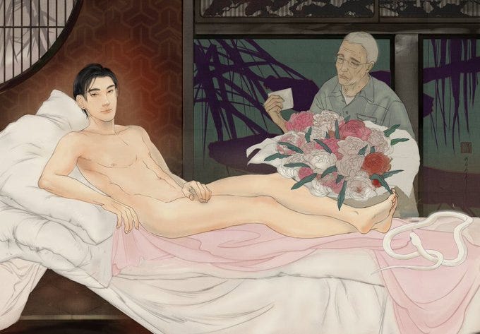 By following him on Twitter you get to see other Chinese and Japanese Gay artists, since he retweets other artists.